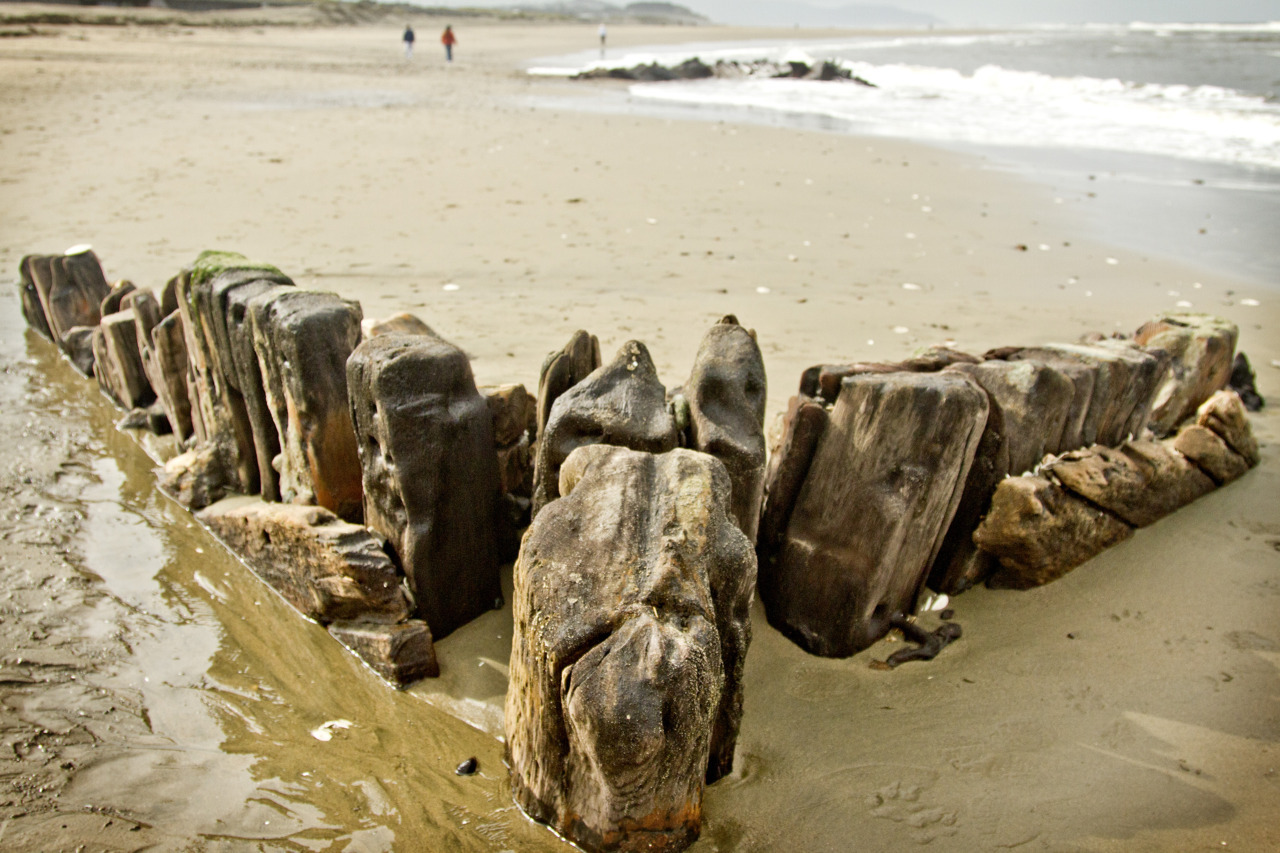 The King Phillip shipwreck seen on a semi-low tide Friday April 22, 2011. The King Phillip is a commercial sailing ship built in Maine in 1856, and wrecked on the sands of Ocean Beach, San Francisco 1878. The above image shows the bow (front) of the ship, looking toward the stern (rear).