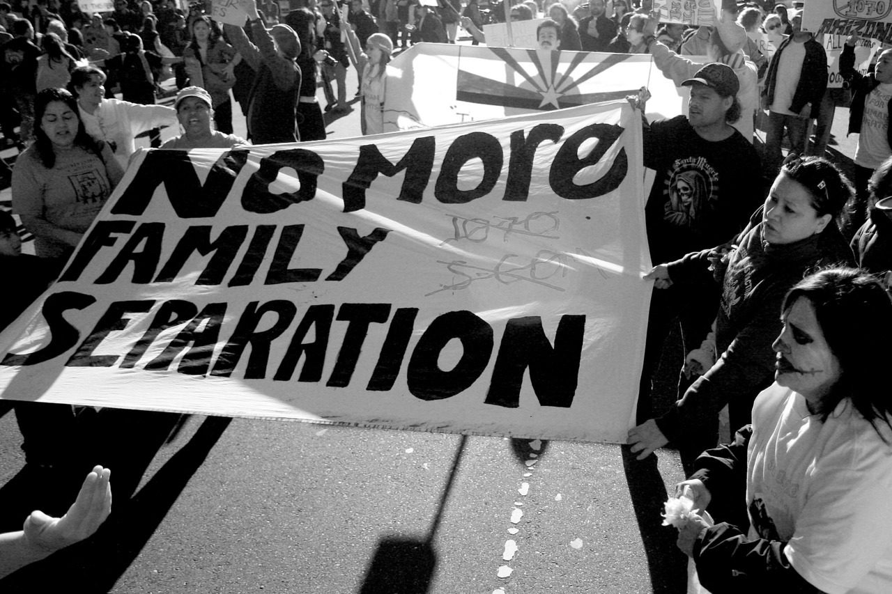 Opponents of SB1070 take over 7th Street in protest of the law. Religious leaders, community residents, and organizations held a procession and protest of SB1070 outside of the 9th Circuit Court of Appeals in San Francisco, Calif. Monday November 1, 2010. Jon Weiand/Xpress