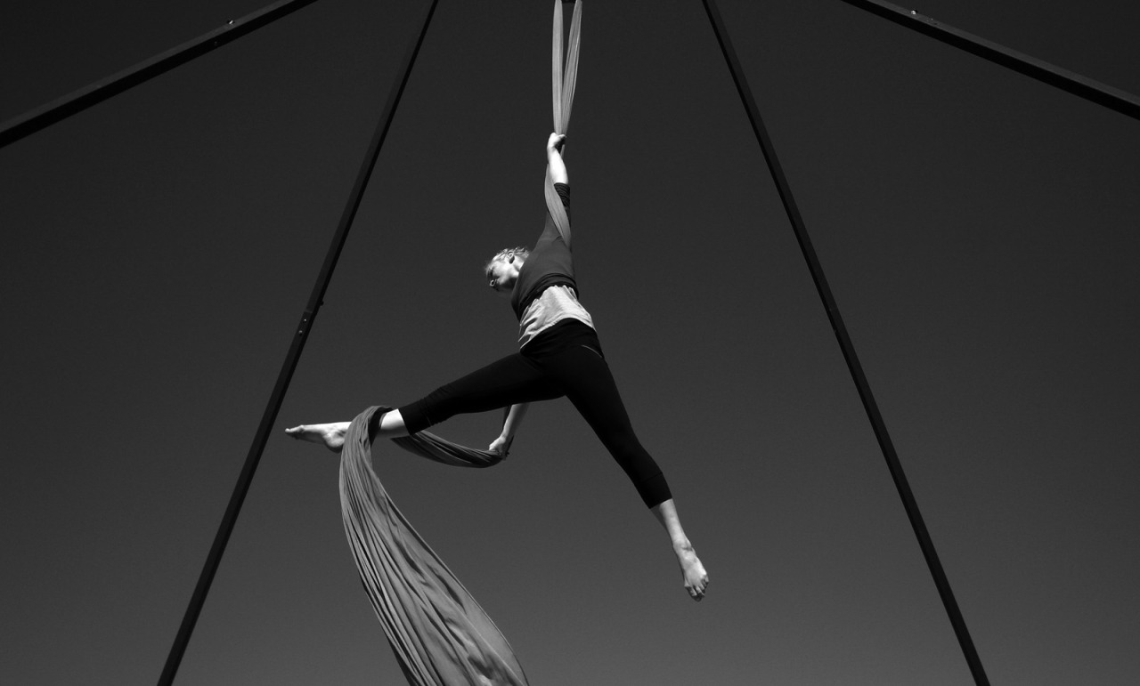 Cherie Jacque performs aerial acrobatics in Santa Cruz.