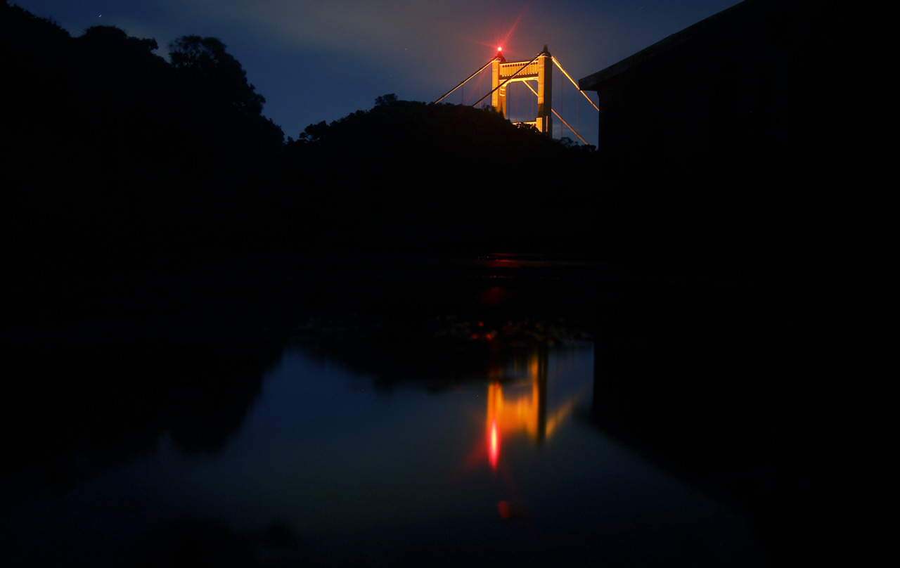 Nighttime reflection of the Golden Gate Bridge.