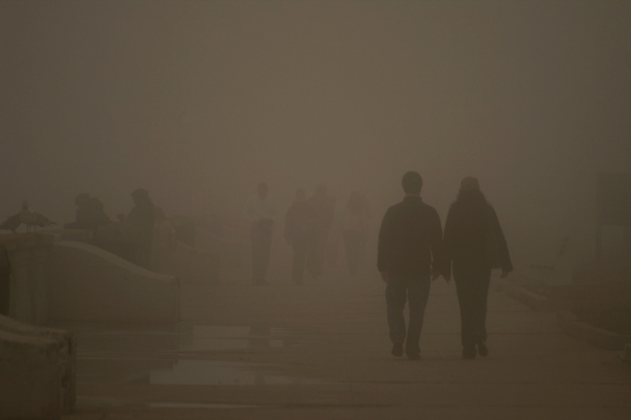 Groups of visitors at Ocean Beach near Golden Gate Park experience thick, San Francisco fog May 3, 2009.  Jon Weiand